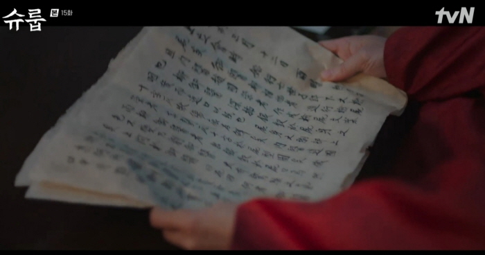 사실, 태인 세자의 검안서는 중전이 갖고 있습니다. 태인 세자 사후 모든 내의원 어의들이 숨지거나 자취를 감췄는데 혼자서만 무사히 궁에서 어의로 지내는 자가 숨겨 둔 것을 찾아낸 것이죠.