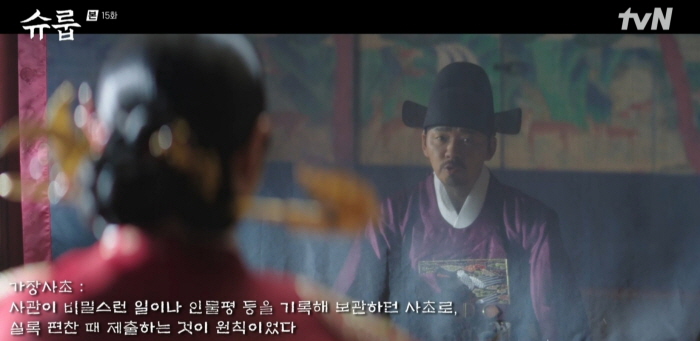 박경우는 왕에게 가장사초의 내용이 만천하에 드러난다면 왕권이 흔들리고 조정이 어지러워지며 그 피해는 고스란히 백성들이 겪을 것이기에 아예 가장사초를 없애라고 말합니다. 왕은 이미 태인 세자 관련 승정원 기록을 태워버렸었죠. 가장사초도 없앨까요?