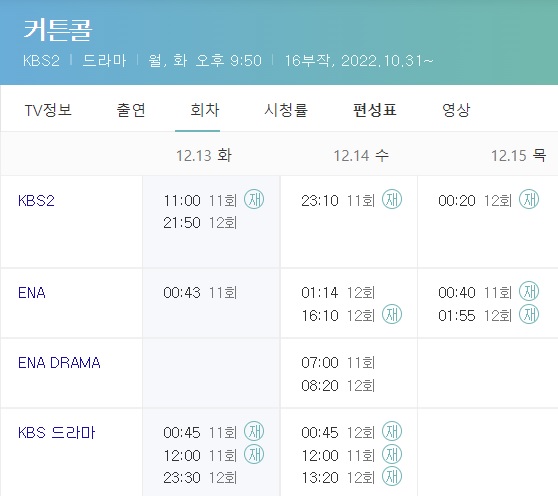 커튼콜 재방송 시간 11회 12회