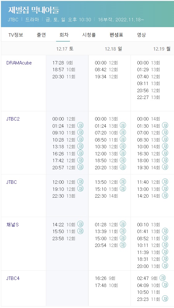 재벌집 막내아들 재방송 시간표