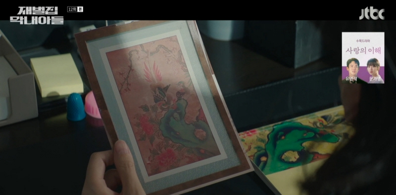 서민영 검사는 청부 살인 대금으로 사용된 화조도를 추적하고 있습니다. 모현민은 그 화조도는 자신의 갤러리소장품이 아니고 모조작이라고 알려줍니다. 모조작을 유통시키는 심화랑 명함을 건넵니다.