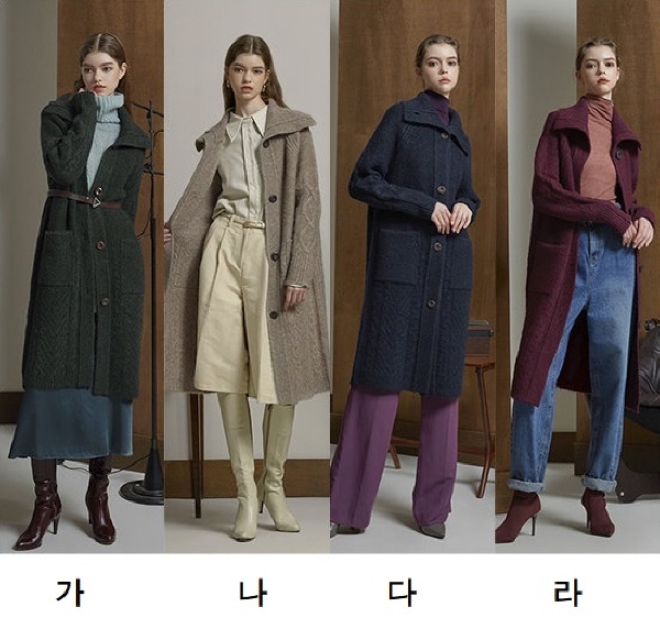 롱 니트 가디건에 얇은 벨트는 내가 좋아하는 코디다. 같은 옷도 가와 나는 세련된 느낌인데 다와 라는 촌스러운 느낌이다. 가와 나 스타일을 추천한다.