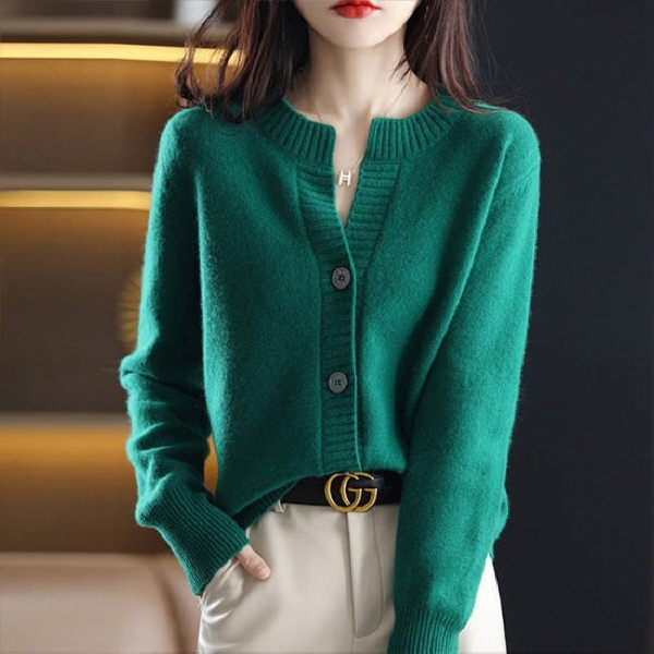 비비드 컬러의 단추 가디건에 아이보리 팬츠도 당당한 느낌을 줘서 좋다. 비비드 컬러는 하나만 사용하는 게 과하지 않아서 좋다.