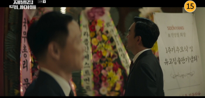 진도준은 유산으로 받은 7000억 원을 기부한다는 대대적인 기사를 퍼트리며 정직하고 믿을 만한 재벌 3세라는 이미지를 구축합니다. 진도준은 순양 기념관에 찾아가 진양철 사진 앞에 인사합니다.