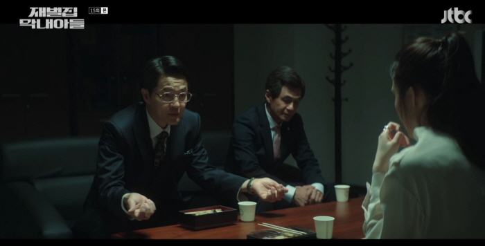 진영기 부회장은 아들 진성준에게 최대주주는 진도준이라도 경영권은 자신에게 있다며 경영에 절대 참여하지 못하게 하겠다고 합니다. 진성준은 회사가 사주 일가 마음대로 경영되던 시대는 지났다며(2000년대 초반) 이제 주주들의 권리가 중요해지기 시작했고 진도준은 최대주주로서 최대한 경영에 간섭할 거라고 말하죠.