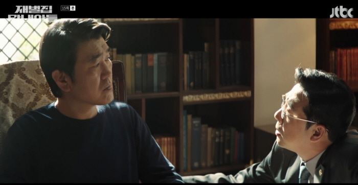 진영기와 진성준은 진동기의 연행 소식에 승계 싸움 경쟁자가 사라졌다고 좋아합니다. 진영기는 처가와 명동 사채업자를 통해 비밀리에 대선자금을 마련했기에 안전하다고 생각했습니다. 그러나 검찰이 명동 사채업자와 처가를 수사하자 다급해진 진영기는 아들 진성준에게 모든 책임을 떠넘기며 말합니다.