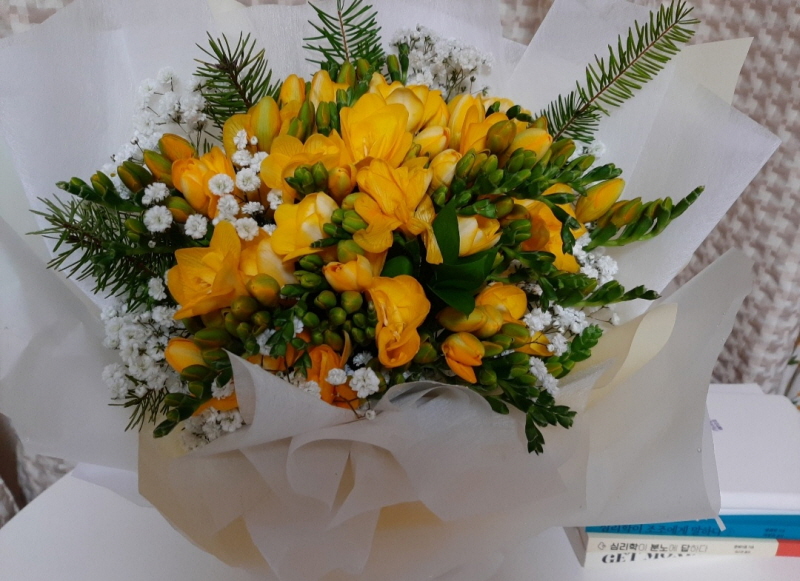 그녀는 작년 봄, 짠한 내돈내산 프리지어 이야기를 읽고 기억했다가 짠! 선물했을 것이다. 그녀의 섬세한 배려는 늘 감동스럽다. 프리지어를 보고 있자니 ‘나를 위해 기도해 주고 나의 앞날을 응원하는 사람’에 대한 고마움이 퐁퐁 솟았다.