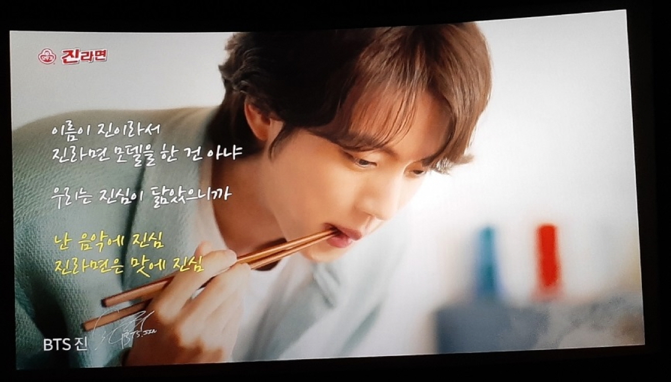 스크린 속 BTS는 옷이 다 젖도록 땀을 줄줄 흘리며 춤추고 노래했다. 최고가 된다는 것은, 그렇게 수 없이 흘린 땀과 피나는 노력의 보상인 거지. 티켓 구하기가 그렇게 힘들다는 BTS 라이브 공연에 꼭 가 보고싶다. 김남준, 김석진, 민윤기, 정호석, 박지민, 김태형, 전정국 모든 멤버들이 군복무 잘하고 개인 활동도 잘 하고 완전체로 뭉치기를 응원하네~