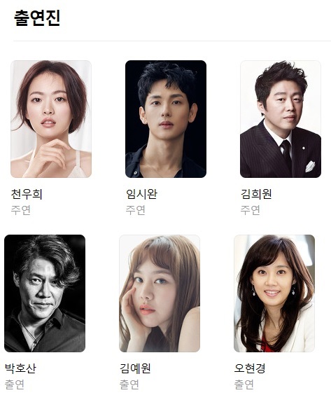 스마트폰을 떨어뜨렸을 뿐인데 출연진은 천우희(이나미 역), 임시완(우준영 역), 김희원(강력계 형사, 우준영 아버지 역), 박호산(이나미 아버지 역), 오현경(이나미 회사 사장 역), 김예원(이나미 친구 역)으로 한국 배우들 연기력이야 이미 넘사벽이라는 평가를 받듯 모두의 연기가 뛰어났습니다.