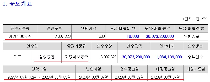 청약 증거금 환불일도 2023. 3. 7.(화)입니다.
