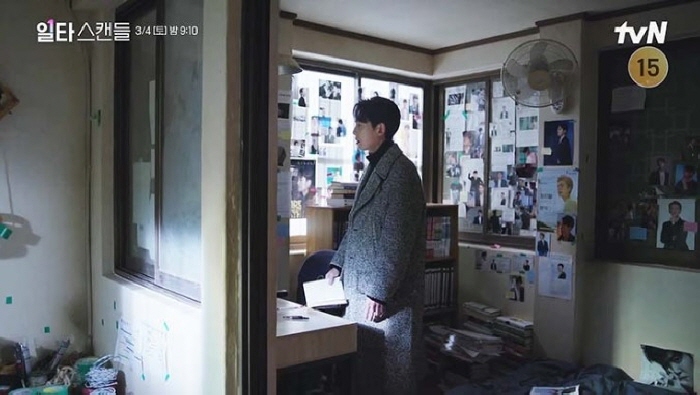 최치열은 지동희가 쇠구슬 살해범이라는 강한 의심을 품게됩니다. 회의에 지동희만 참석하도록 한 후 그 시각 치열은 지동희의 옥탑방으로 향합니다. 스마트폰을 차 안에 두고 나가는 치열은 스릴러 장르의 클리셰인 ‘중요한 순간에 어리석게 행동해서 관객의 심장을 쫄깃하게 자극하라’를 보여주었네요.