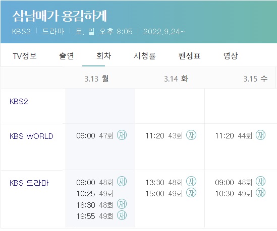 KBS2 주말드라마 삼남매가 용감하게 49회가 12일 오후 8시 5분에 방영되었습니다. 종영을 얼마 안 남겼는데 ‘막장 드라마’라는 꼬리표가 붙었지만 꼬리를 무는 갈등의 연속으로 시청률이 높습니다. 삼남매가 용감하게 49회 줄거리 재방송 시간 몇부작에 대한 포스팅입니다.