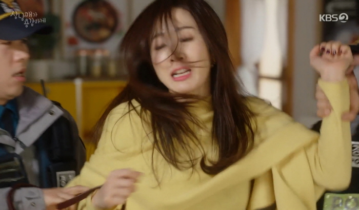 신지혜는 김소림에게 꼭 하고 싶은 말이 있다며 신무영의 집으로 부릅니다. 이때 오희은이 들이닥쳐 소란을 피우죠. 그 큰 소란에도 신지혜가 나타나지 않는다는 설정이 에러입니다. 다행히 신무영이 나타나 소란을 진정시키고 오희은은 신무영이 부른 사설 보디가드(?)에게 끌려나갑니다.