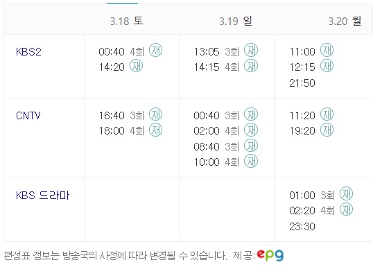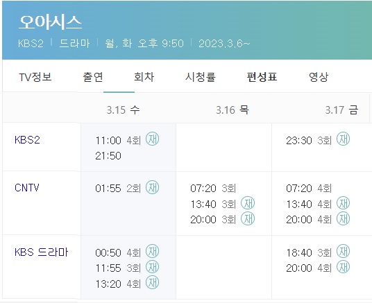 오아시스 재방송 시간표