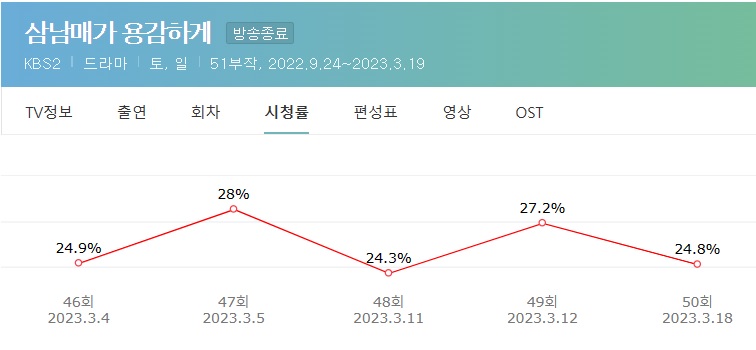 삼남매가 용감하게 시청률 그래프는 아래와 같습니다.