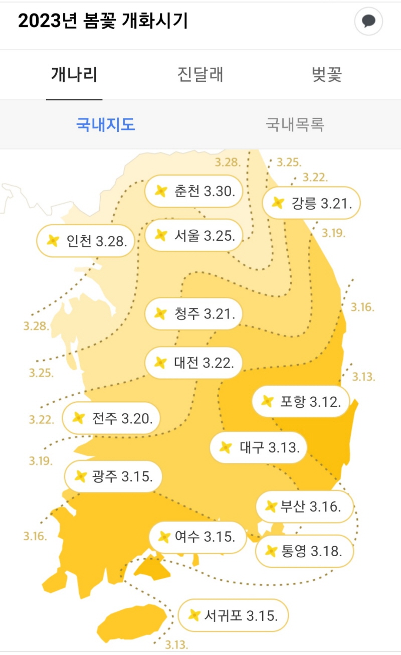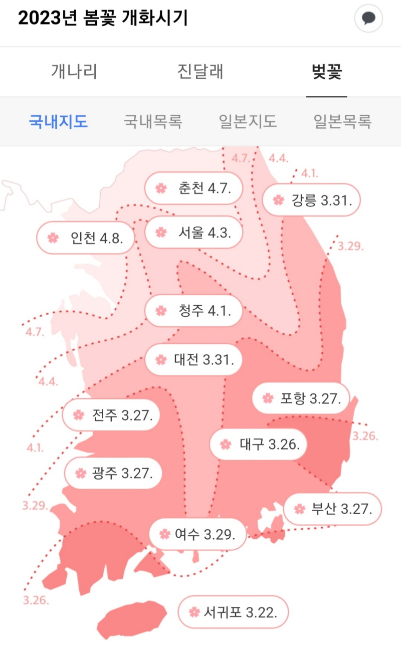 2023 벚꽃 개화시기 남쪽 지역부터