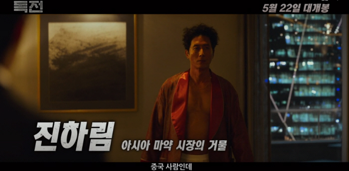 중국 길림성에 본거지를 둔 아시아 마약 보스이자 마약 중독자입니다. 이선생과 거래하기 위해 왔는데 이선생이 나타나지 않자 광기 어린 히스테리를 부립니다. 독전은 고 김주혁 배우의 유작이라 등장 장면마다 마음 짠하게 봤습니다.