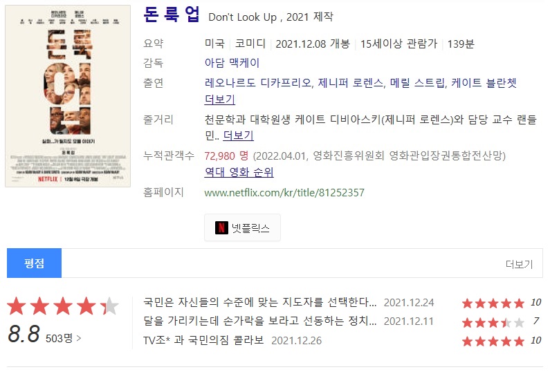 영화 돈룩업 결말 리뷰