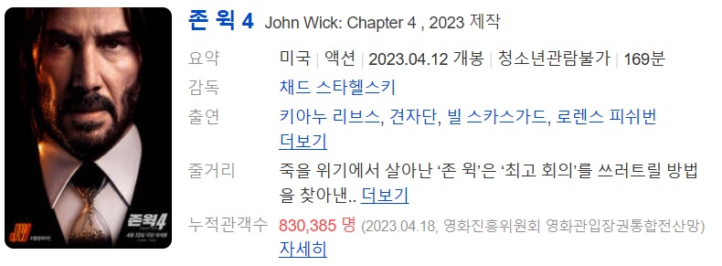 * 존윅4 개봉일 : 2023. 4. 12