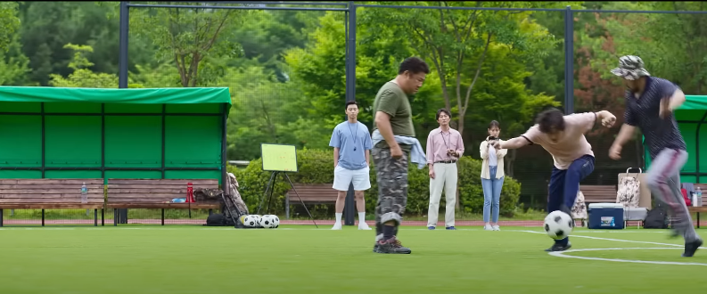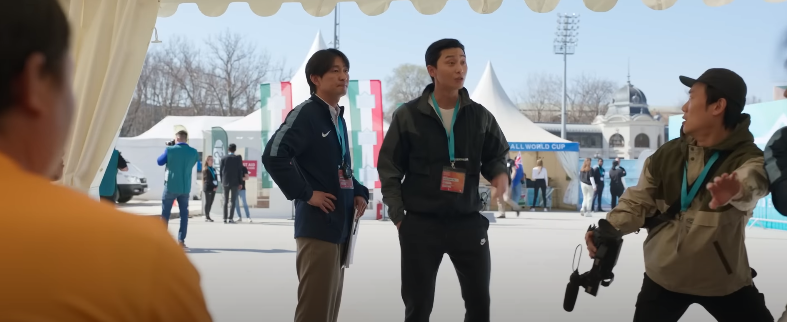 예능 프로그램 ‘서진이네’에서 일머리 좋은 주방장으로 든든함을 보여줬던 배우 박서준은 축구 선수 윤홍대 역을 맡았습니다. 축구 경기 도중 요상한 경쟁심으로 같은 편 선수(강하늘 특별 출연)와 경쟁을 하다 경기에 집니다.