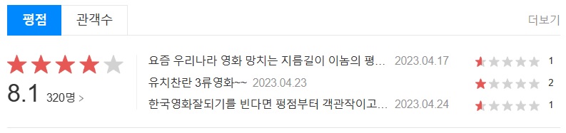 영화 드림 평점은 다음 영화에서 8.1점입니다. 관객평은 전체적으로 불호로, 무척 신랄합니다.