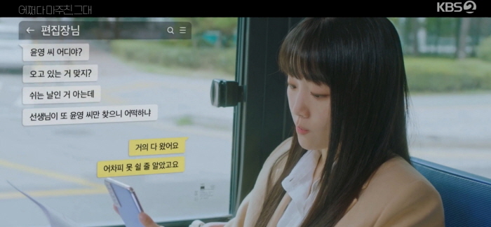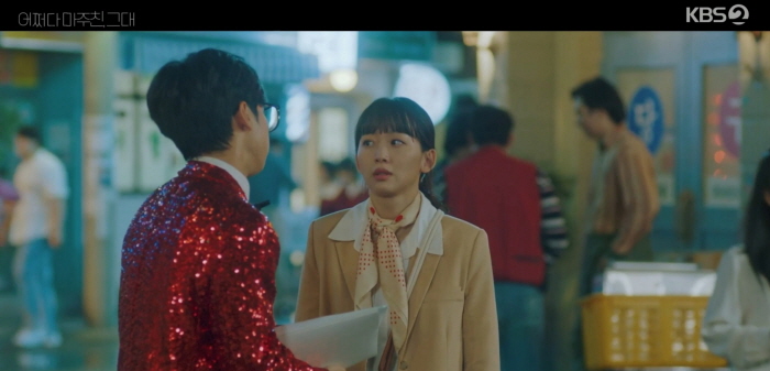 이때문에 윤영도 1987년으로 떨어지게 되고 믿을 수 없는 광경에 멍해집니다. 어쩌다 마주친 그대 1회 줄거리에서 그곳에서 고등학교 3학년 열아홉 살인 엄마 이순애를 발견하고 "엄마!"를 부르며 따라 가려고 합니다.