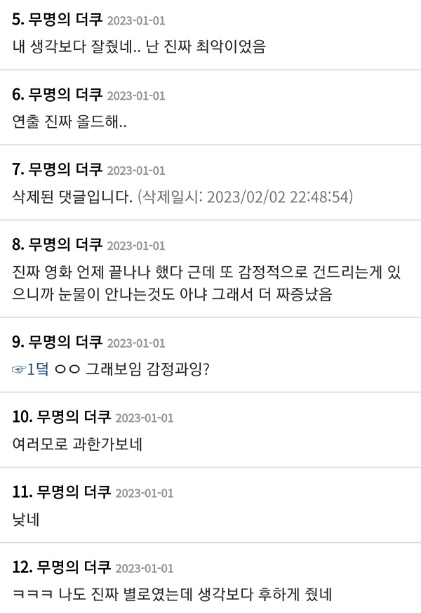 영화 평론가들은 5점~6점을 주고 있다. (별 한 개에 2점으로 환산, 10점 만점) 이동진 평론가는 몇점을 주었을까. 아래는 이동진 평론가의 평점과 이 평론가의 평점을 본 관객들의 댓글이다. 평점이 5점 만점인지 10점 만점인지 알 수 없다.