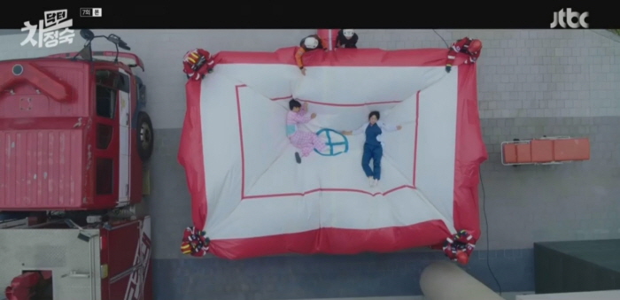 그러나 환자는 투신을 선택하고 환자를 잡으려던 정숙도 함께 추락합니다. 다행히 두 사람은 119 구조대가 설치한 인명 구조용 에어쿠션 위로 떨어집니다.