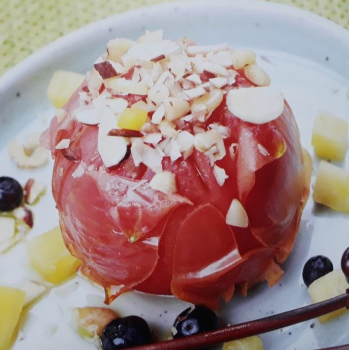 준비물 : 완숙 토마토 중간크기 1개, 견과류 약간,