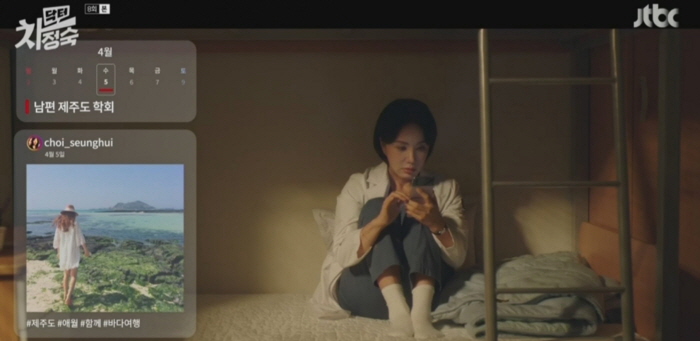 호텔 가족 식사 기대로 기분이 좋았던 차정숙은 우연히 최승희의 SNS를 보게 되고 충격에 빠집니다. 프랑스, 거제, 제주... 최승희가 여행 갔던 곳과 날짜가 서인호가 학회 출장 갔다던 장소, 일정과 일치합니다. 차정숙의 무너지는 심정이 어떨지요...