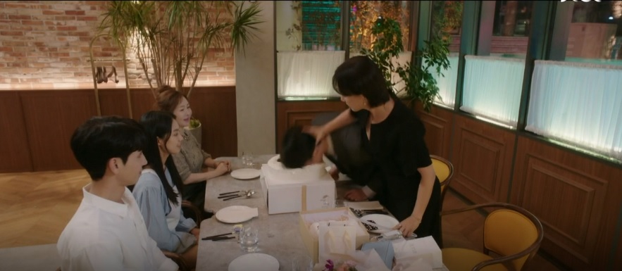 지난 회차에서 서인호(김병철 분)의 불륜을 확인한 차정숙(엄정화 분)은 비장한 표정으로 자신의 생일 파티를 위해 호텔 레스토랑에 모인 가족을 향해 걸어갔습니다. 예고편에서는 서인호를 생일 케이크에 처박고 캐리어를 끌고 집을 나가는 장면이 나와서 사이다 반격의 시작이라는 예상을 했습니다. 진지충스럽지만 생일 케이크에 얼굴을 박는 행위는 바닥에 케익 고정용 날카로운 핀이 있어 무척 위험합니다.