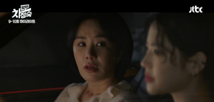 전소라는 넋 놓고 앉아 있는 차정숙을 발견하고 숨 쉬기가 힘들다는 차정숙에게 드라이브 가자고 합니다. 전소라는 차정숙이 왜 숨 쉬기 힘든지 안다며 "두 사람을 죽이고 싶을 거"라고 합니다. 전소라는 커버터블의 지붕을 오픈합니다. 차정숙은 바람이 얼굴을 치니까 숨이 쉬어 진다고 하는데 갑자기 비가 내립니다. 지붕이 안 닫혀서 당황하는 것도 잠시 정숙은 그 상황이 웃기다며 크게 웃습니다.