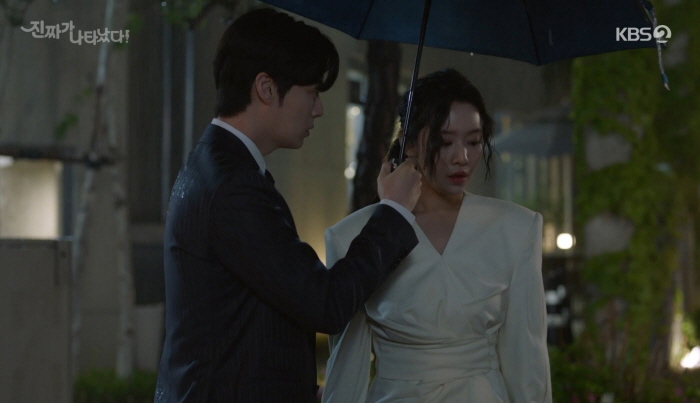 아이인데 우산은 자신이 쓸 거 하나, 태경에게 줄 거 하나 두 개를 챙겼어야지 하나만 챙겼습니다. 진짜가 나타났다 17회 줄거리에서 태경은 우산을 세진에게 건네고 빗 속을 뛰어갑니다.