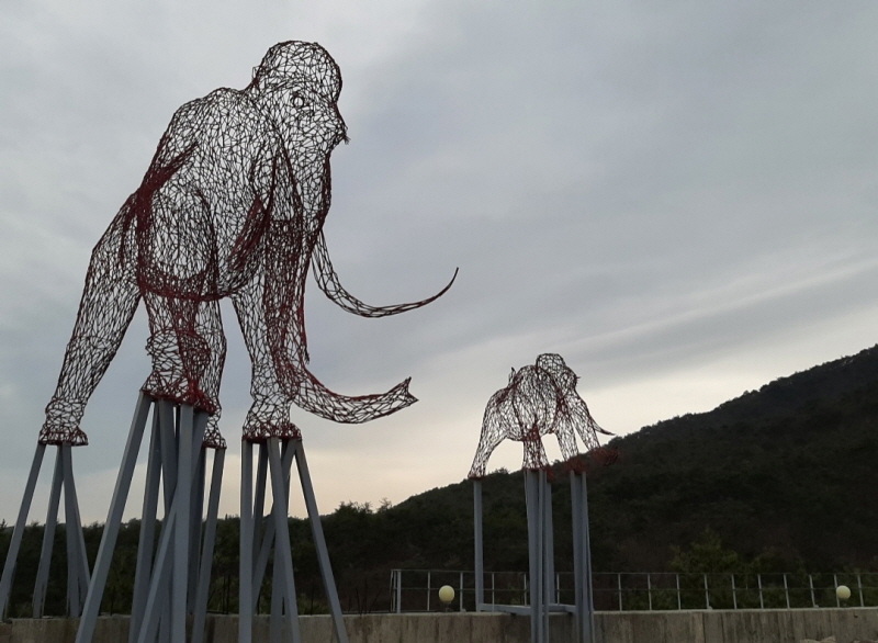 정문에 해당하는 건물을 지나면 맘모스 코끼리와 기린이 반겨줍니다. 야외 조형물은 입장권 없이 즐길 수 있습니다. 미술관 입구에서 예매 티켓을 제시하면 바코드가 달린 종이 티켓으로 교환해 줍니다.