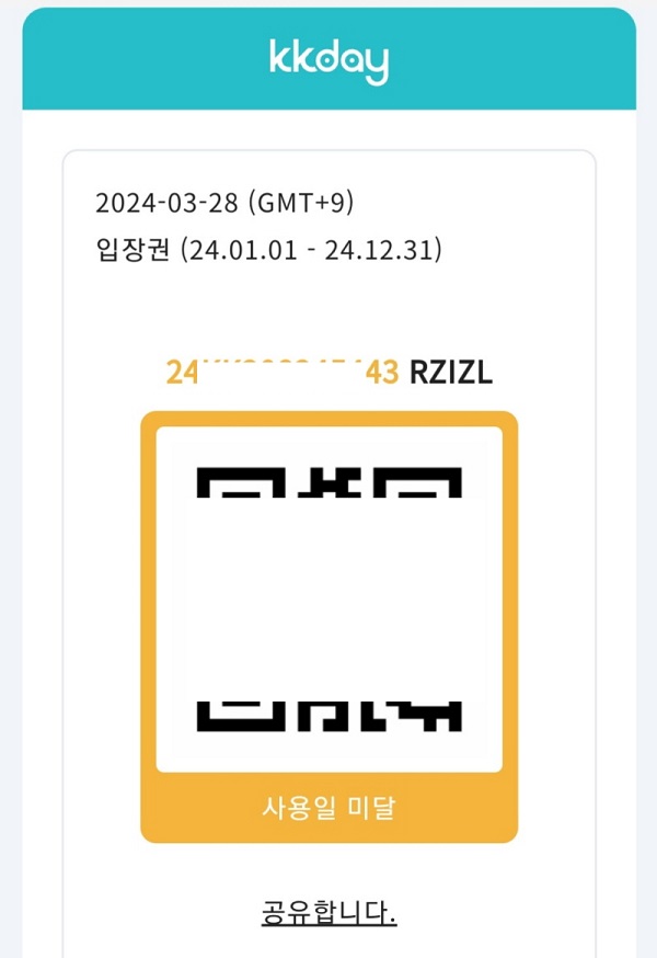 이름과 전화번호, 이메일 주소 등 기본 정보를 입력하면 스마트폰으로 아래와 같은 예매권이 도착합니다.