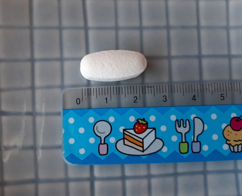 그런데 약의 크기가 조금 큽니다. 타원형인데 가로가 약 2.3cm, 세로가 약 1cm, 두께가 약 0.9cm입니다. 큰 약을 넘기기 힘든 분들에게는 추천하지 않습니다.