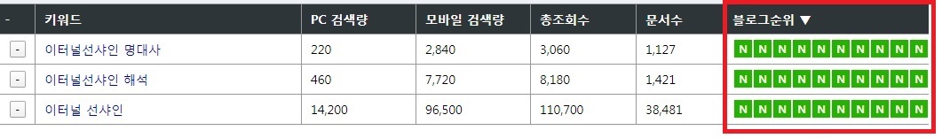 블로그 순위의 N자를 클릭하여 상위에 포스팅된 글들을 읽어 본다.