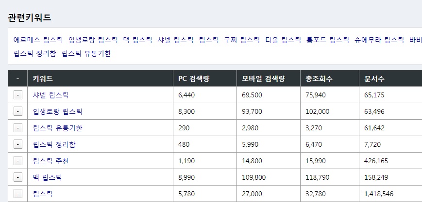 하나더~ ‘립스틱’이라는 키워드는 어떨까?