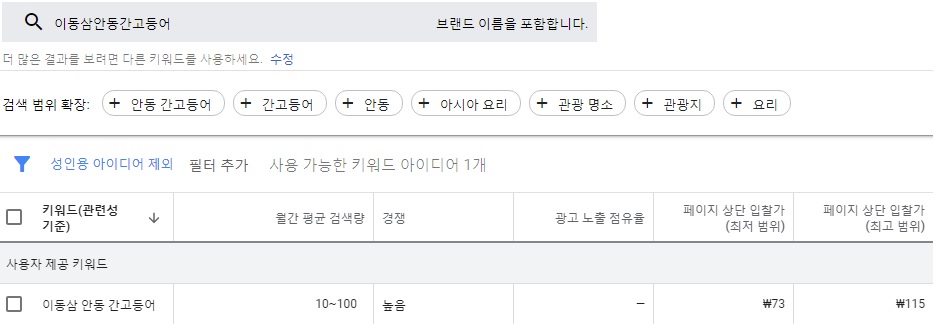 그러나! 구글 애드워즈 키워드를 사용해 보자.