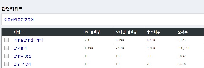 이동삼안동간고등어의 문서수 나누기 총조회수는 0.46이다.