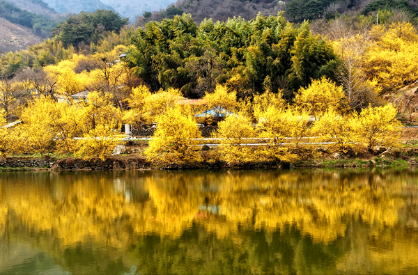 수령이 오래지 않아 보이는 산수유가 몽환적인 꽃을 틔웠다.