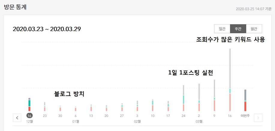 특히 내가 도움을 받은 것은 유효한 키워드 찾는 방법이었다. 사람들의 관심이 많아 조회수가 높고 경쟁자는 많지 않은 키워드를 찾아야 한다. 책에서 설명한 대로 키워드를 정했더니 방문자수가 증가한 것을 확인할 수 있었다.