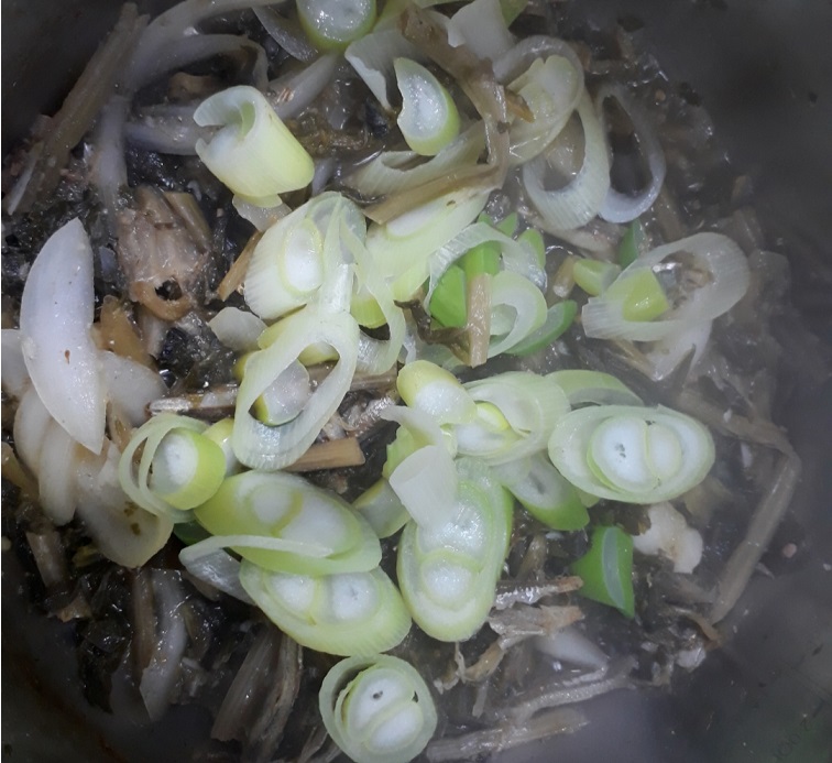 준비물 : 삶은 시래기, 된장, 다진마늘, 양파, 어슷썬 파,