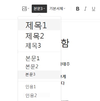 리뷰뎃님은 글쓰기 메뉴 중 글자 크기 바꾸는 메뉴를 눌러