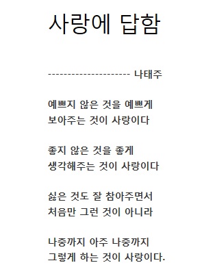 제목인 ‘사랑에 답함’ 부분을 h1 태그로 강조해 보자.