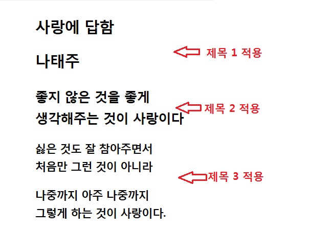 제목1, 제목2, 제목3를 사용하라고 한다.