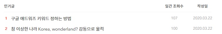 결과로는 하루 10 ~ 20명 정도 꾸준히 검색되는 글이 2개 정도 되었다.