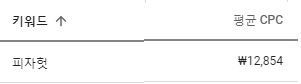 구글 애즈에서 키워드 단가를 확인한다.