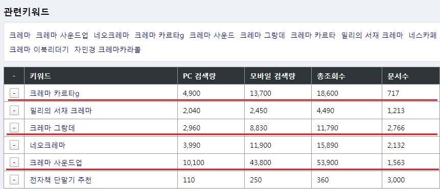 키워드마스터에서 검색한다.