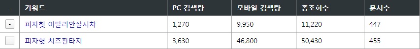 그래서 첫번째 유효 키워드는 ‘피자헛 치즈판타지’.